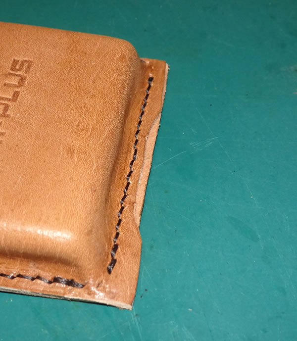 とりあえず、革が固い上にサイズ的な余裕が全く無いので、菱目打ちをする為のガイドラインを引くのが難しく、何度も引き直しした痕跡が残ってますw