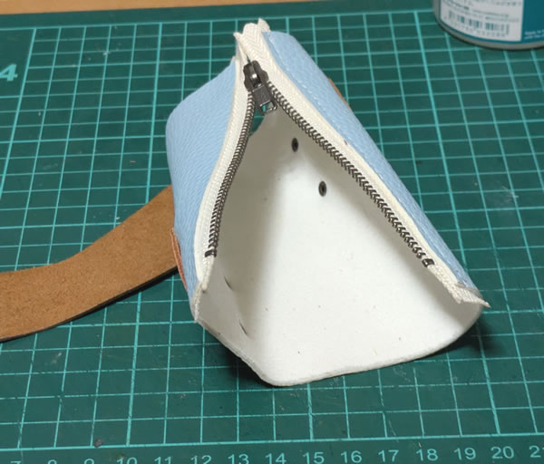 最初から縫える素材にすれば良かっただけの話だとは思いますが、ヌメ革で作っちゃってたのです。