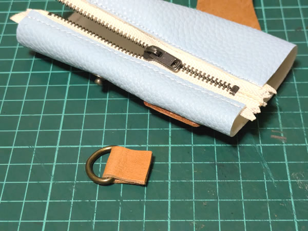 ミシンの使い方に慣れる為にやってる訳ではなく、あくまでレザークラフトのデザイン試作な訳でして、これ以上の遠回りはそーっと避けて、今回はDカンの部分だけはさっさと手縫いにしてスルー。