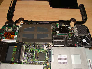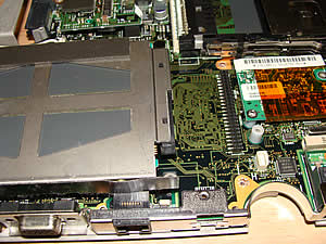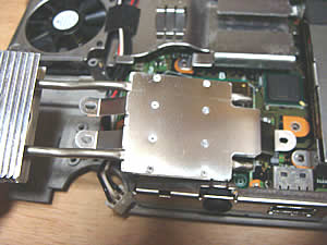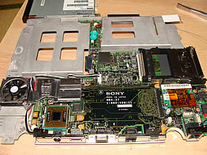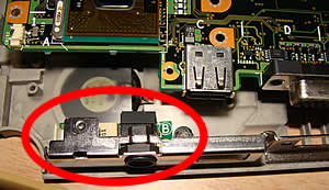 最後に、基盤を固定してるネジ群を全部外して、ようやく基盤が動かせました。その下に固定されてるのが、今回の目的の部分だった次第です。 |