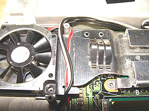冷却ファンを外さないと、電源部まで到達できません。