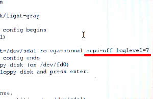 boot: acpi=off loglevel=7