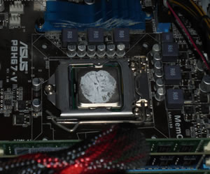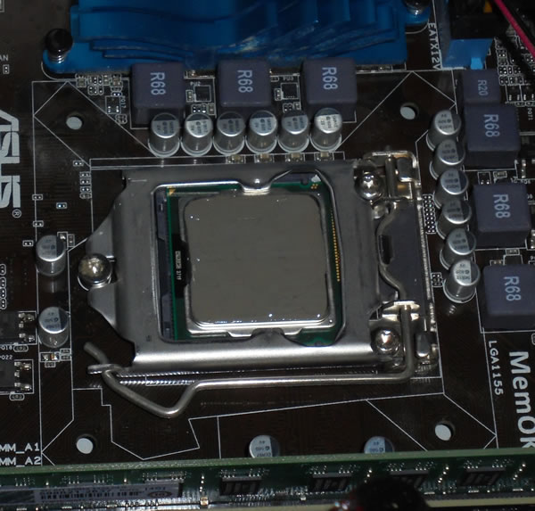 人によっては、この状態でクーラーを押し付けると自然に伸びるからこれでOK!という派と、ちゃんとCPU全体に薄く伸ばしておくほうが良い、という派があるようですw