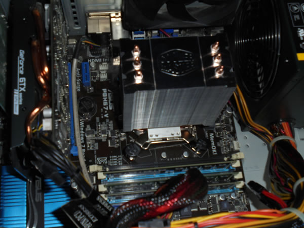 思った以上に新しいクーラーが大きくて、そのままでは取り付けは不可能で、隣接してるRAMを外して、手を入れる隙間を確保するも、クーラーをマザボに固定する爪になかなか手が届かず、かなり難航。