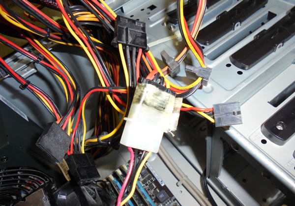 何が面倒だったか?と言うと、マザーボードとの接続部分とかも同様ですが、予期せぬ原因でコネクタが外れてしまう、という大事故を防止する為に、難燃性のガラス繊維入り粘着テープで、コネクタ同士の接続部がしっかり固定されてまして、基本的に外す事など想定されてないからです。