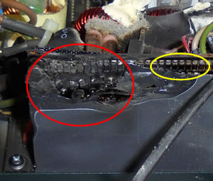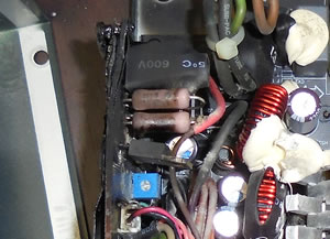 改めて確認です。ちょっと判り難いですが、電源ケーブル差込口の左上が焦げてます。