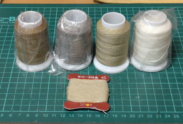 本体のパッチワークは、色々試してみて、家族から一番評判の良かったSEIWAさんのWロービキ糸の5番:ベージュを使うことに決定。